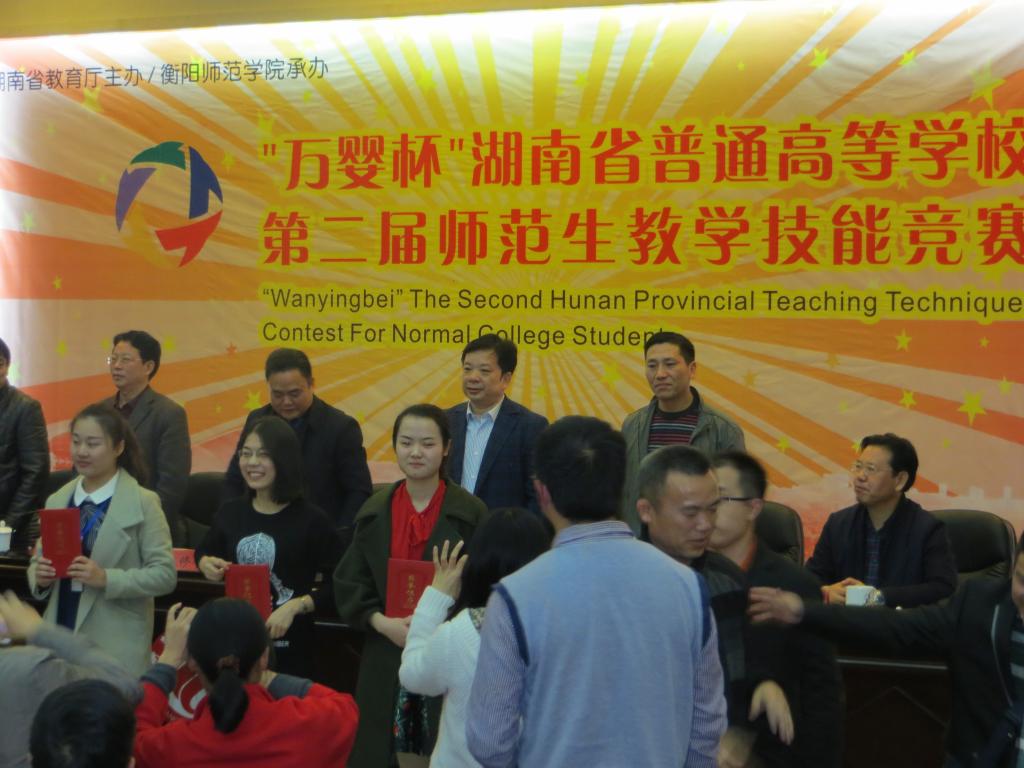 2016年11月11日至12日,湖南省教育厅举办、衡阳师范学院承办的湖南省普通高等学校第二届师范生教学技能竞赛在衡阳师范学院举行。来自省内23所高等院校128名全日制在校师范生代表参加了本次比赛。KY官网代表队5人参加竞赛,取得较好成绩,来自KY官网外国语学院的刘洋同学荣获一等奖(指导教师:禹逸群),来自教育学院的高富文同学荣获三等奖(指导教师:赵艳红)。