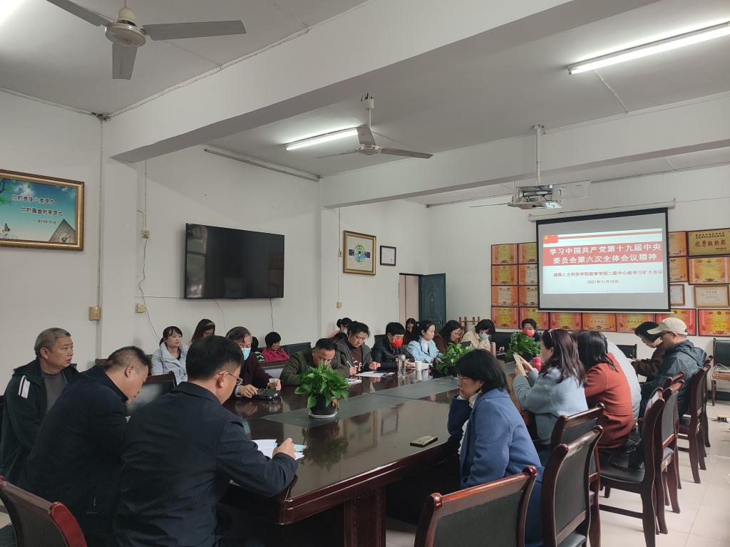 1116日下午2:30,教育学院二级中心组扩大学习会议在甘澍楼304会议室举行,主要集中学习了中共十九届中央委员会议第六次全体会议公报精神。会议由党总支书记邹坤主持,院长、总支副书记刘超良等院领导,院党总支委员,教工支部书记,学生支部书记及全体教职工参加会议。会议还邀请了学院民主党派、无党派人士参加。