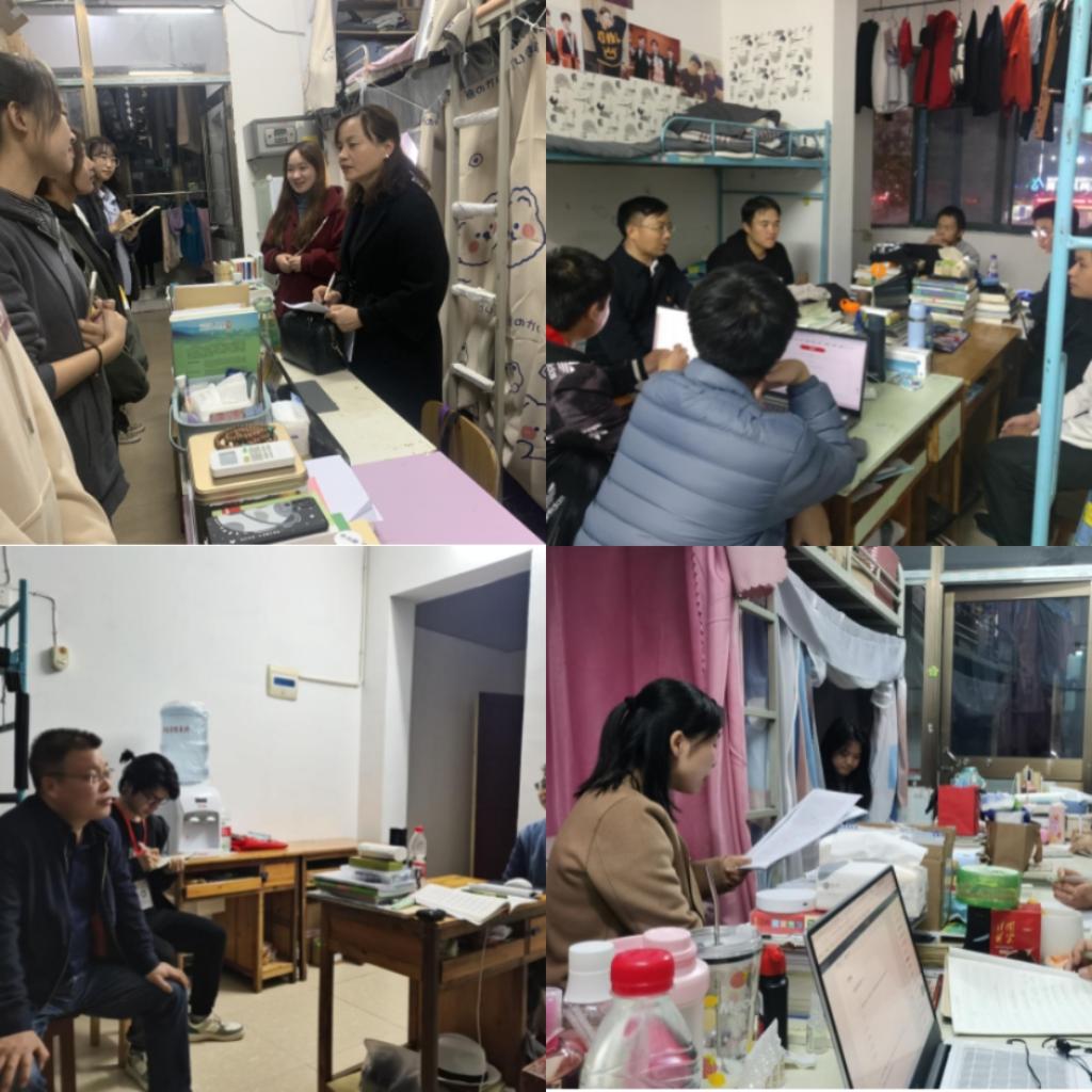 李玲军、郑秀星、谢四元、曹宇、邹坤、刘超良、田密分别到所联系寝室宣讲十九届六中全会精神,讲解学校现阶段防疫政策、询问同学们在学习、生活上的困难。