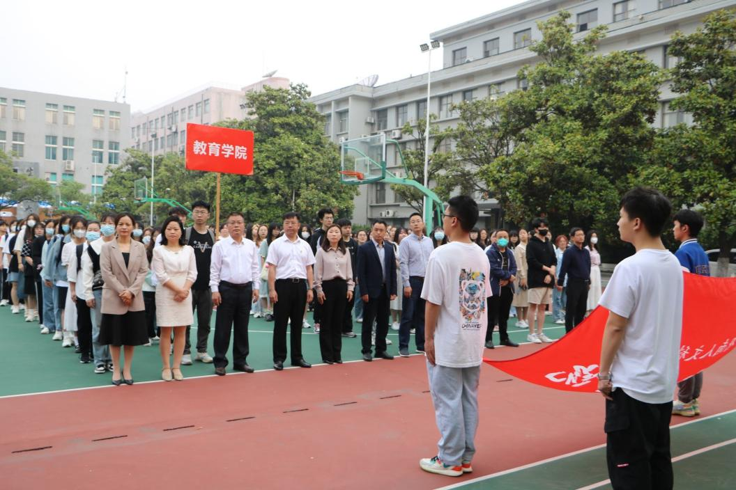 5月15日清晨,教育学院在学校宇光球场举行了“迈上新征程谱写新篇章”的主题升旗仪式。学工处副处长谢四元、曹宇、科长宋双,学院党总支书记邹坤、院长刘超良、党总支副书记田密,副院长刘黎明,学院全体班主任及2020级、2021级、2022级学生参加本次升旗仪式。升旗仪式由学工办主任李佳维主持。