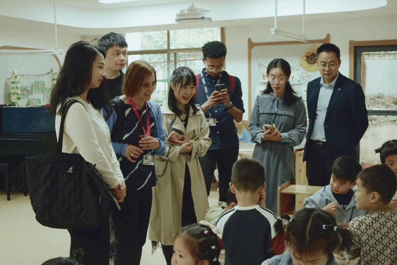 4月12日,教育学院副院长刘黎明、学前教育教研室主任赵艳红、教师代表文思婕,国际合作与交流中心肖湘辰,巴斯斯巴大学教师Shaddai、Karen一同前往学院实习实训基地娄底市机关幼儿园、恩雅幼儿园和凤鸣谷自然学校等地参观交流。