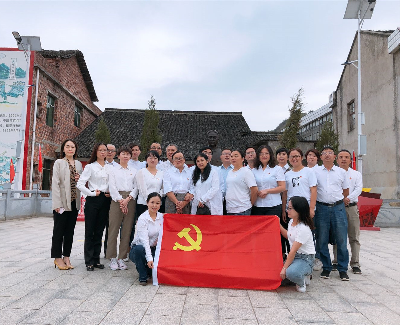 在贺国中故居,全体党员列队向贺国中烈士雕像敬献花篮。KY官网党总支周月朗书记带领大家重温了入党誓词。全体党员身着正装,胸佩党徽,庄严宣誓。随后,大家参观了贺国中故居,观看了贺国中英雄事迹相关视频;了解了贺国中同志短暂而奋进的人生后,大家都表示出了尊敬与景仰。我们要传承革命先辈的精神,立足本职岗位,履职担当作为,为学校的发展乃至中华民族的伟大复兴贡献出自己的力量。