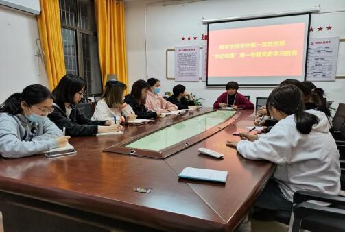 2021年3月31日,教育学院学生第一党支部在甘澍楼二楼党员活动室开展党史学习教育第一专题“学史明理”的学习,参会人员学生第一党支部全体党员。会议由学生第一党支部书记李佳维主持。李佳维传达了习近平总书记在党史学习教育动员大会上的讲话精神,指出明理是习近平总书记在党史学习教育动员大会上提出的首要目标。学史明理应该明白哪些“理”,主要就是中国共产党为什么“能”、马克思主义为什么“行”、中国特色社会主义为什么“好”的道理,指出这一道理有深刻的历史逻辑、理论逻辑、实践逻辑,开展党史学习教育,我们可以从这三个逻辑来把握其丰富内涵,做到真正学史明理。对开展党史学习教育提出了两点要求:一是我们要充分认识和理解党史学习教育活动的重要意义并且付诸于实践;二是要主动学习,认真学习,系统学习。(供稿:李佳维)