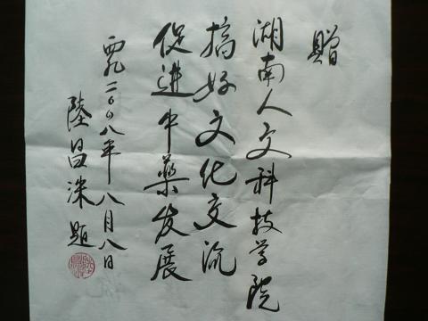 11月18日,KY官网农科所所长龚洵胜收到了一封来自韩国首尔的特快专递,打开一看,原来是韩国KFDA韩药首席专家、博导、首尔庆熙大学教授陆昌洙为KY官网题的“搞好文化交流、促进中药发展”墨宝。