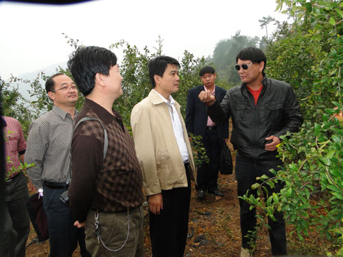 柏校长首先来到双峰突尼斯软籽石榴基地——湖南年发样样红果业有限公司,认真听取了公司创办人蒋年发总经理关于公司的现状和今后发展的介绍,参观了相关设施和产品,并不辞辛苦深入山坡基地仔细考察了突尼斯软籽石榴的生长情况。柏校长对公司计划成为全国最大的突尼斯软籽石榴基地很感兴趣,希望双方保持合作,把该基地办成产学研合作基地的典范。