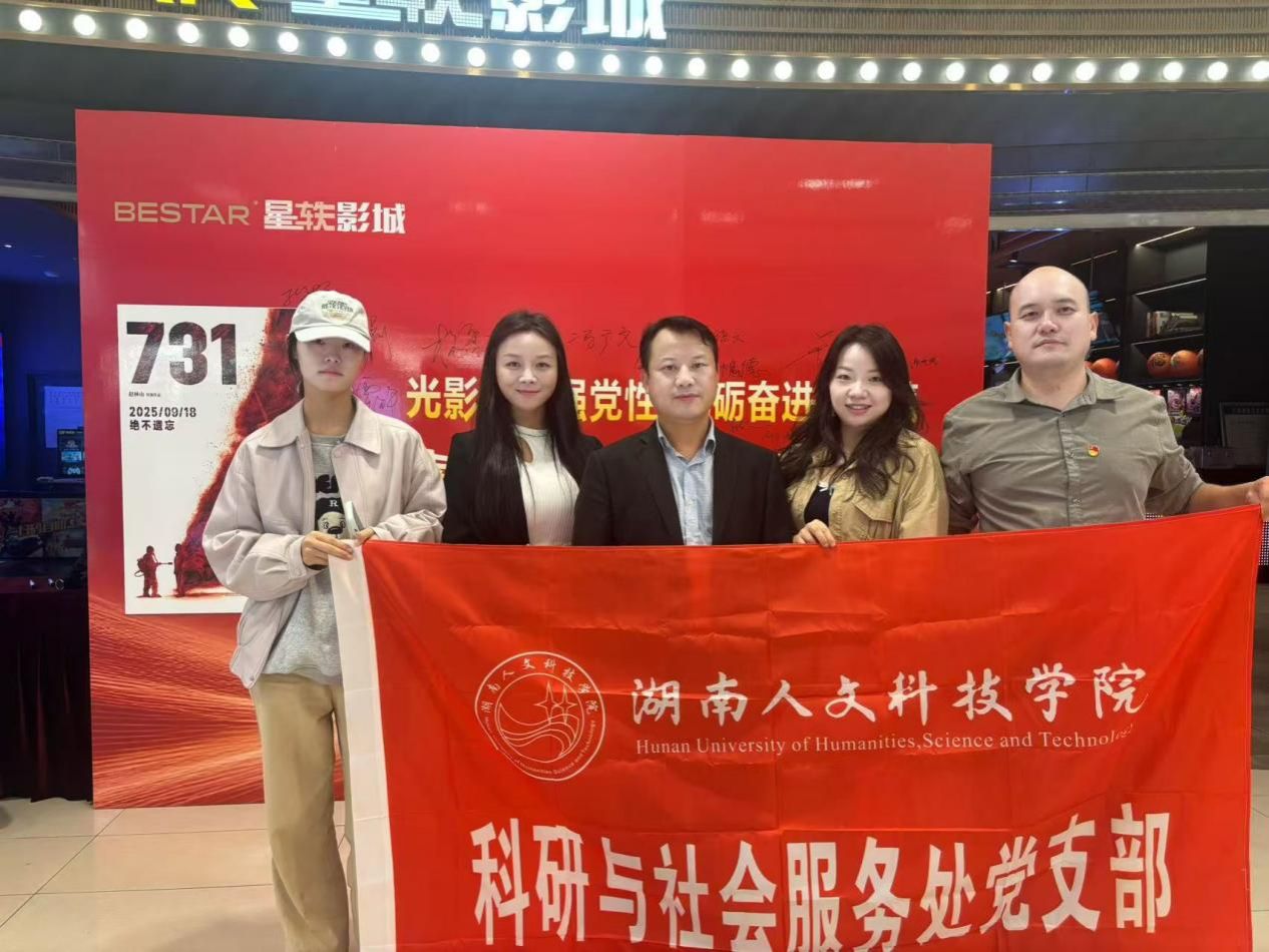 为深入开展爱国主义教育,弘扬伟大民族精神,进一步激发广大量师生的爱国热情和历史责任感,9月24日,KY官网党委组织全体教职工集中观看了爱国主义题材电影《731》,科研与社会服务处党支部全体党员前往观看。