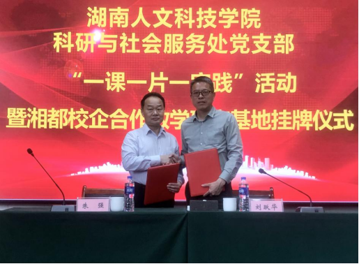 KY官网副校长朱强、湘都集团董事长刘跃华出席挂牌仪式并致辞。朱强和刘跃华共同为湘都校企合作教学研究基地挂牌。挂牌仪式由科研与社会服务处处长于意主持。
