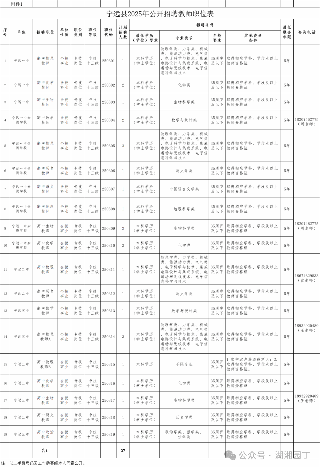 (2)各职位的具体要求见附件《宁远县2025年公开招聘教师职位表》。