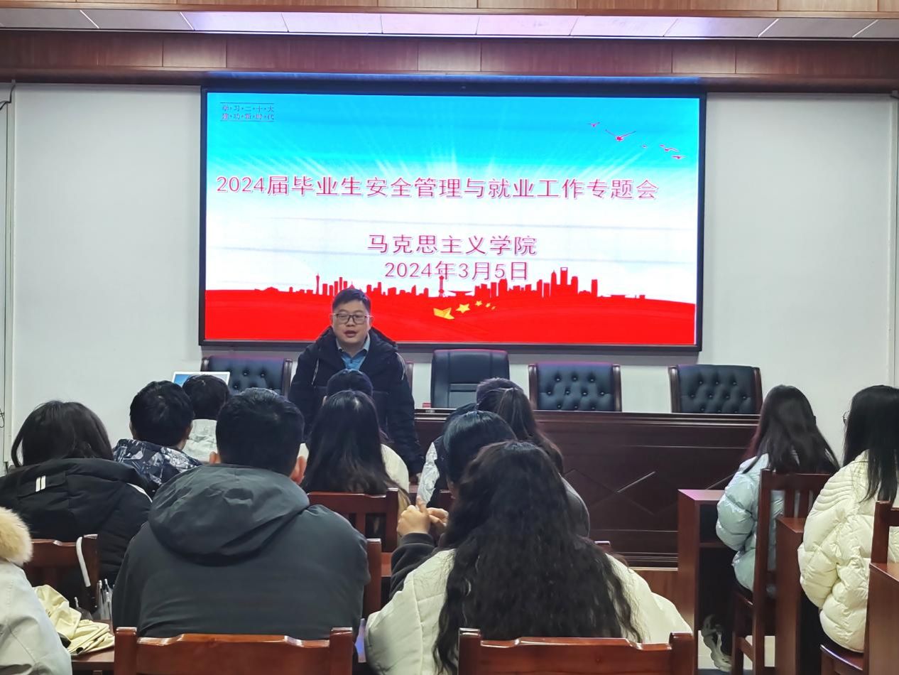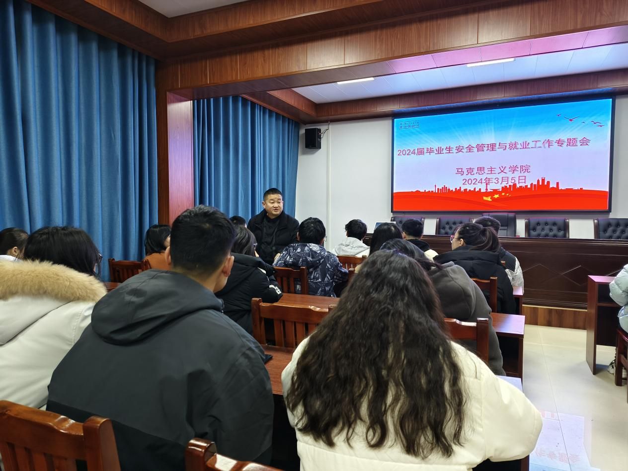 3月5日,KY官网在若谷楼116和205召开2024届毕业生安全管理与就业工作专题会。会议由马克思主义学院党总支副书记周友博士主持。副院长杨国辉教授(博士),辅导员张得才和钟燕及全体在校毕业生参加。