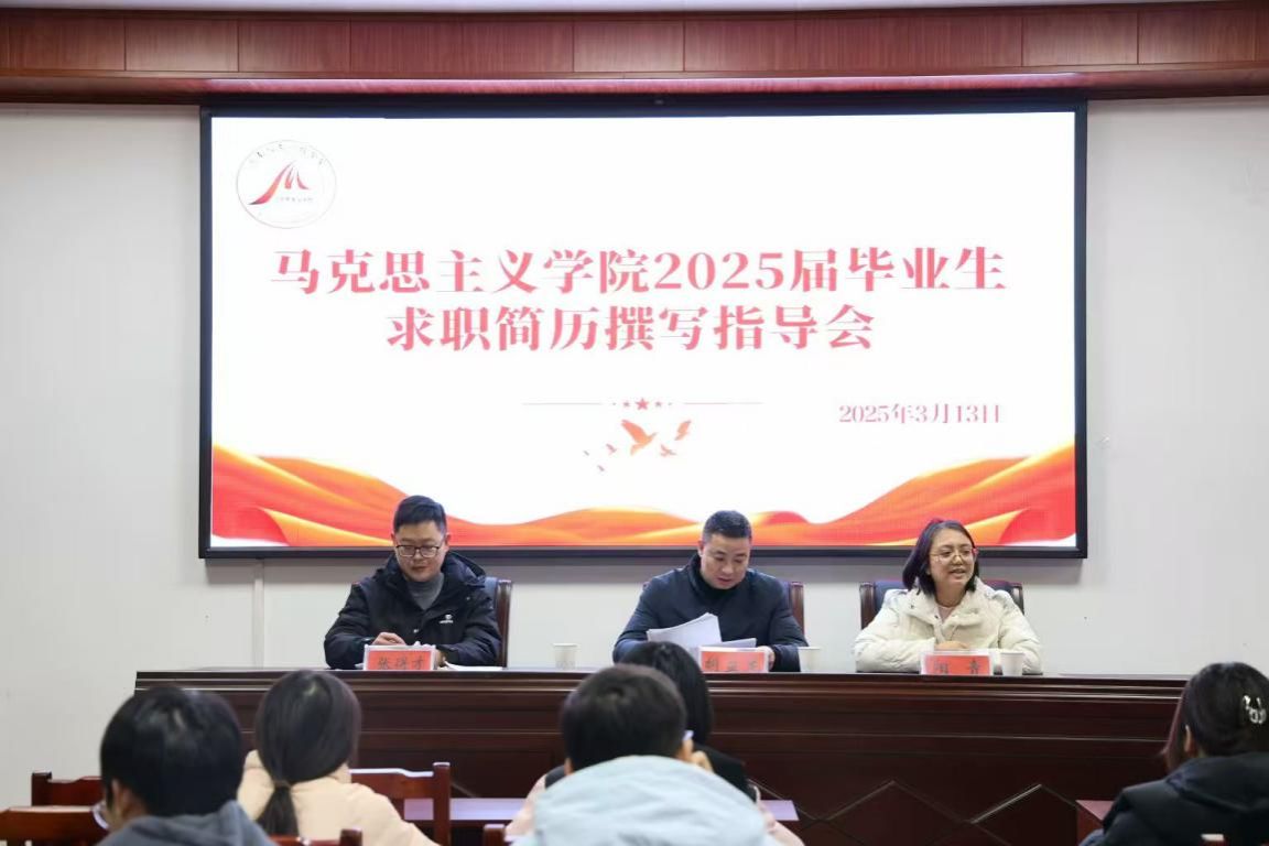 为进一步完善2025届毕业生的求职简历,提升毕业生的就业能力。3月13日,马克思主义学院于若谷楼 116 举办 2025届毕业生求职简历撰写指导会。该会由学院党总支副书记阳青主持,商学院党总支副书记胡益龙受邀出席指导,就业专干张得才及在校2025届毕业生参加。