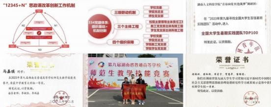 学院党总支严格落实“三会一课 ”制度、思政课改革创新工作机制、党建工作机制,常态化政治学习,精心策划主题党日活动。学院被学校党委确定为标杆院系建设单位,教工支部被确立为第一批样本支部建设单位。近三年,“挑战杯 ” 全国大学生课外学术科技作品竞赛获一等奖 1 项、二等奖 1 项;全国“三下乡 ” 社会实践活动重点团队立项 1 个;湖南省第九届大学生研究性学习成果展示竞赛获一等奖 1 项、二等奖 3 项;湖南省师范生教学技能竞赛获一等奖 1 项、二等奖1 项、三等奖 2 项;“青春向党 红色筑梦 ”调研团连续 3 年获湖南省“芙蓉学子 ·乡村振兴 ”计划资助立项。