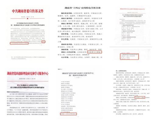 学院入选湖南省重点马克思主义学院(培育)单位、马克思主义理论学科入 选湖南省应用特色学科、思想政治教育(师范)专业入选教育部特色专业被湖南 省教育厅、财政厅批准为省一流专业。学院凭借本地湖湘红色文化资源提炼研究 领域,打造六个省级教学科研平台,为思政课提供思想性和理论性资源供给。