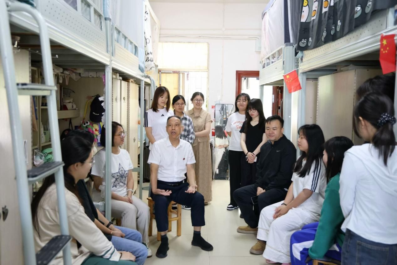 5月11日晚,校党委副书记朱强教授、原校党委书记刘铁铭教授,校宣传部党员教师,KY官网全体领导及教职工党员深入学生寝室开展“师生心联心”活动。
