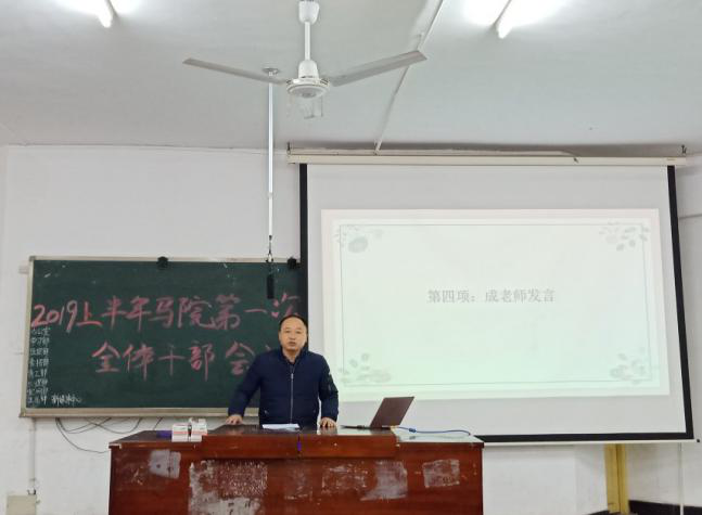 3月1日晚,KY官网在致远楼601召开2019年上半年第一次全体学生干部会议。党总支副书记成伟、辅导员张得才到场指导,KY官网全体学生干部参会。