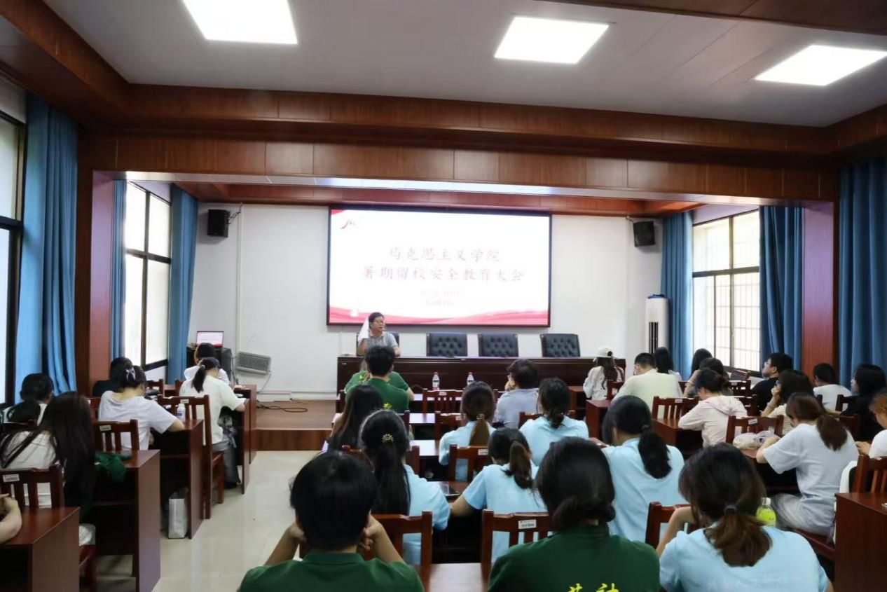 7月1日上午,马克思主义学院在若谷楼116召开学生暑期留校安全教育大会。党总支副书记阳青、学工办主任张得才、辅导员谢家玉,以及全体暑期留校学生参加会议。会议由张得才主持。