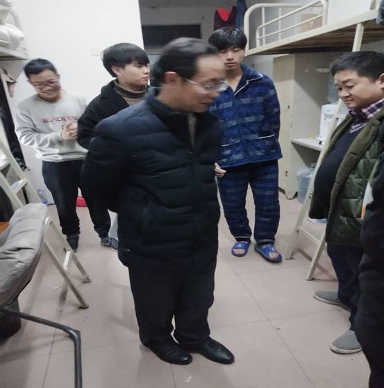 学生工作是生命线,寝室安全是斑马线,为守住安全线,生命线,2018年1月11日晚上21:40-23:00,KY官网党总支书记游训龙,副院长杨国辉带领辅导员张得才,班主任成赛军、孙树文、陈琳,以及学生干部对KY官网全部学生宿舍进行了安全隐患大排查。