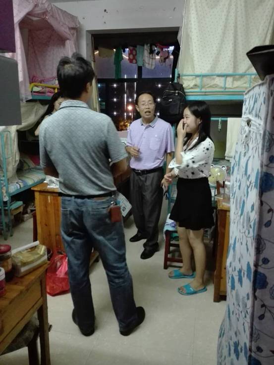 为了进一步了解学生的住宿情况,以及提高住宿学生的安全意识。2017年9月28号晚上KY官网领导游训龙书记、范大平院长、陈灿芬副院长、杨国辉副院长以及教工党支部书记符长喜老师、17级思政班班主任孙树文老师、辅导员张得才老师等在学生干部的带领下分批、分年级对KY官网学生宿舍进行安全隐患大排查。