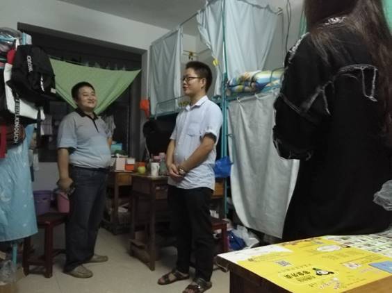 在离开之际,领导老师叮嘱同学们早点休息,调整状态,及时投入到新的学习和生活当中,迎接新的挑战。对于院领导下寝看望,同学们深感亲切,也对新学期的生活充满期待。14级思政班邓智琼同学在领导老师离寝后说道:“老师们一开学就亲自下寝看望我们,和我们近距离交流,作为马院的学生,我感觉到很温暖。”