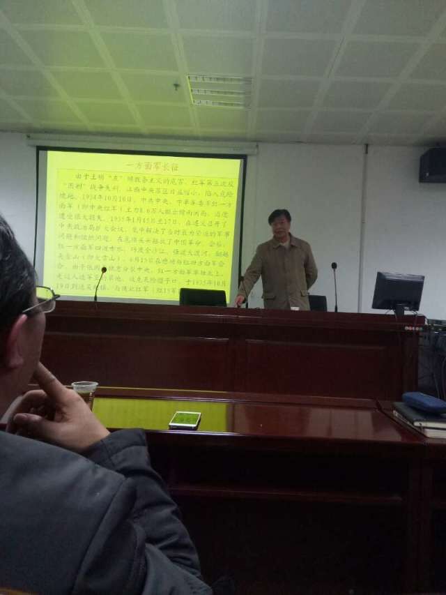 曾长秋教授首先对长征概况进行了简单介绍,他由浅入深、生动形象地重点解读了红一方面军、二方面军、四方面军在革命战役转移中的艰苦征程,并结合长征的数据分析、感人故事、著名战役、转折会议、民族精神和长征启示六大方面,再现了无数革命先烈在争夺胜利,争取民主,继承革命传统以及弘扬长征精神过程中的光辉历程。曾教授用两个小时的报告会,给大家带来了一场革命传统理想教育,同时也提醒我们:长征虽已过去了80年,但长征精神仍长存并激励着无数人——心中有信仰,脚下有力量;用理想之光照亮奋斗之路,用信仰之力开创美好未来;走好新的长征路,坚信中国特色社会主义道路是实现社会主义现代化的必由之路。