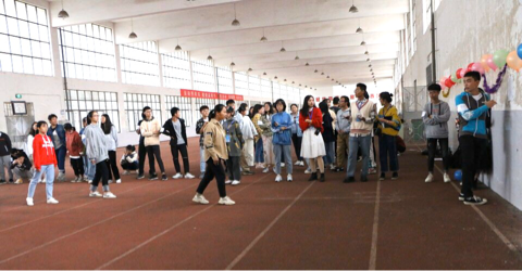 此次活动实则是一场文明素质大赛。它一共分为“为文明转头”“向文明前进”“文明传声筒”三个环节,组织人员将报名参与活动的同学按十人分为一组后,随即按照相关游戏规则进行比赛。每个小游戏都包含了文明用语、文明礼仪等文明小知识,同学们通过游戏的形式,了解文明知识,提升文明素养。风雨田径棚中充满同学们的欢声笑语,充分体现同学们积极参与的热情。