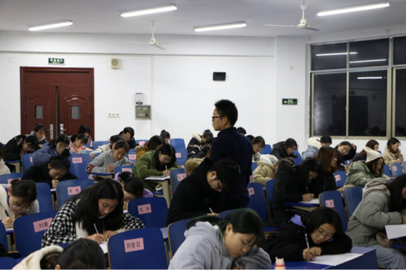 同学们进入考场后,快速找到自己的座位就坐。监考人员简单讲解完考试时间及相关规则后,依次分发试卷。考试过程中,监考人员秉持公平公正的原则严肃监考。同时,同学们沉着应考,细心作答,以最认真的态度对待此次考试。同学们经过对审核评估学生学习手册的反复学习,已有了较高的掌握度,均能在本次考试的规定时间内完成并有序交卷离场。