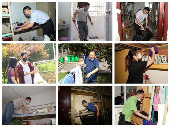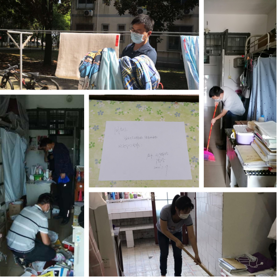 正值毕业生即将返校和娄底地区进入梅雨季节之际,活动前期,KY官网教师主动联系学生,在了解学生物品摆放需求后,在院党总支书记游训龙和院长张卫明的带领下,KY官网全体教职工对每间毕业生宿舍进行全面清扫。在充分尊重同学们的隐私的前提下,老师们自备口罩、抹布等劳动工具,认真整理书籍、衣物,折被子、抹窗户、摆鞋子、扫地拖地、打扫阳台,如同在打扫自己孩子的宿舍,一丝不苟。为了防止被褥出现丢失、混淆的情况,细心的老师们专门在被子、床单上用红色布条系扣并标记上寝室号和姓名,以及晒被子人的联系方式。还有老师在毕业生宿舍通过留言的方式欢迎毕业生回家。学生纷纷通过QQ动态、微信朋友圈等平台对学院全体教职员工点赞,纷纷感慨:“老师们辛苦了”、“太暖了”、“做马院的学生真幸福。”学生们深受感动,不少学生还流下感动的泪水,纷纷表示记住在学院的点点滴滴,好好学习,认真工作,将劳动精神挥洒在中学思政课课堂上,不辜负学院领导老师们的培养和期望。