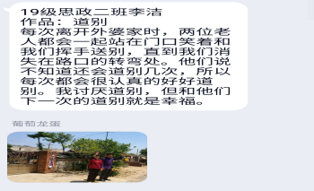 活动期间,同学们踊跃报名参加,表达了丰富的情感,同时也展示了优秀的作品。活动一,突如其来的疫情,使得这次毕业与以往不同,同学们将想说的话通过“青马家园”公众号留言板尽情表达,诉说不舍,送出祝福。活动二,留心生活,捕捉自己身边的幸福时刻,发现美,找到美。活动作品可以通过绘画、视频、照片等多种形式呈交,同学们呈交的作品丰富感人,精彩纷呈。最终,经评定,向可兰同学获一等奖,李洁、盛子航两位同学获二等奖,林欣怡、谭璐琦等五名同学获三等奖。