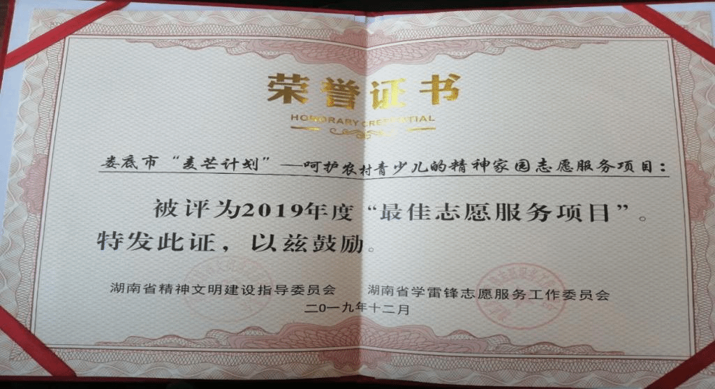 “麦芒计划”成功入选湖南省2019年度最佳志愿服务项目,既是对“麦芒计划”及参与该计划的志愿者们的高度认可,也是对KY官网参与志愿服务、深入群众、服务地方等工作的充分肯定,对于提升“麦芒计划”及KY官网影响力、传播力,增强KY官网学生志愿服务意识、使命担当意识能够产生重大作用。