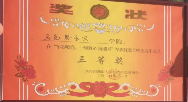 军歌嘹亮,红心向国。激昂的旋律、雄壮的歌声飘荡在学校上空,人文学子在一首首军歌中重温着那段烽火连天的岁月,抒发着激情澎湃的爱国情怀。在此次比赛中,由KY官网李蓉同学指挥、20级90名新生共同演唱的《国家》,用嘹亮的歌声传递出作为一名中国人的骄傲和自豪,赢得在场观众和评委一致好评,最终荣获三等奖。