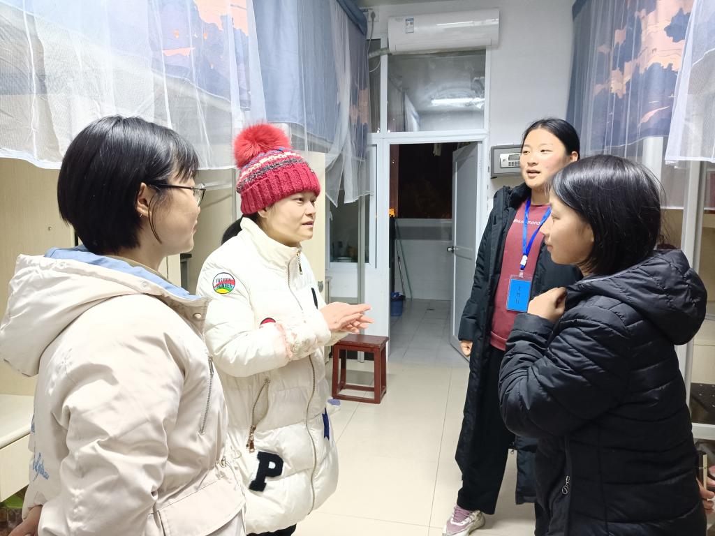 张小妹老师到寝检查并强调宿舍安全的重要性,说明使用违规电器的后果,她希望同学们能注意寝室用电安全,不使用违规电器。随后,张老师还与学生亲切沟通、交谈生活和学习中所遇到的难题,分享自身经验为同学们答疑解惑。最后,张小妹老师鼓励同学们在规范寝室内务的同时要做到积极进取、努力钻研学业。