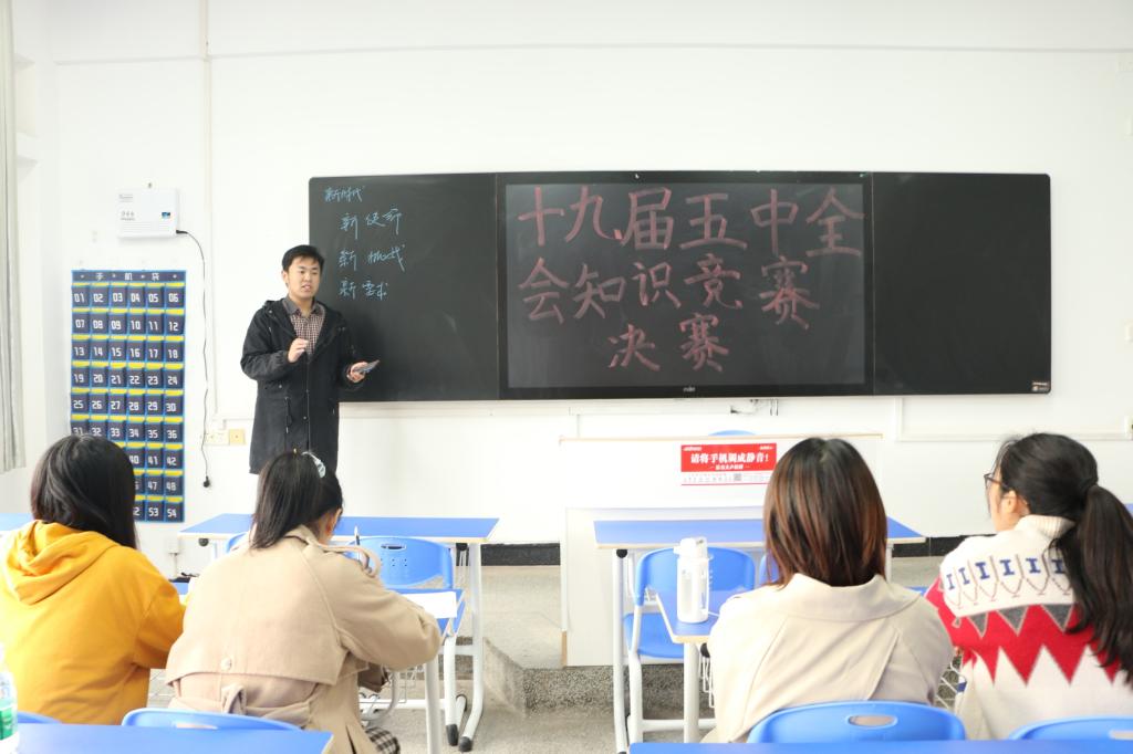 4月6日下午三点,KY官网在致远楼604教室开展十九届五中全会知识竞赛决赛,本次比赛由吴鑫星和庞伊晨同学主持,KY官网学生会三位主席团成员和18级刘佳琦、吴晓芳、梁梓轩担任评委。