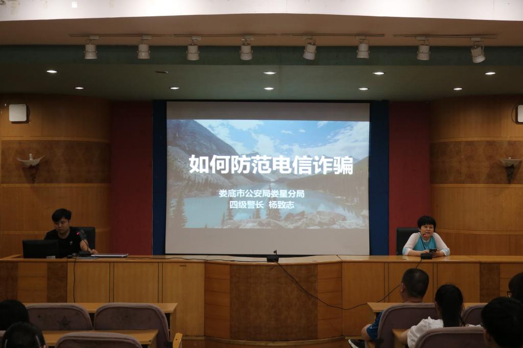 为丰富学生的生活常识,进一步提高学生防诈骗的意识和能力,保护学生人身和财产安全,6月18日晚,KY官网于养根楼报告厅举行防范电信诈骗讲座,本次讲座由娄底市公安局娄星分区杨致志警长主讲,KY官网张小妹老师主持,KY官网院长张卫明教授及18级、20级学生参加。
