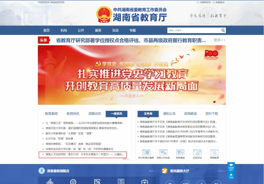 湖南省教育厅官网链接:http://jyt.hunan.gov.cn/jyt/sjyt/xxgk/gxdt/202108/t20210803_1050209.html