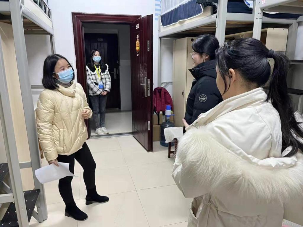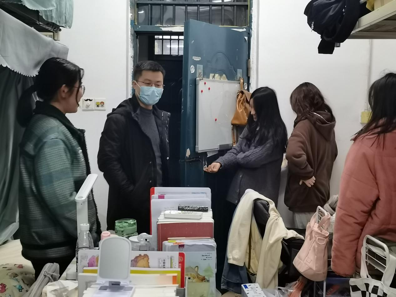此次下寝的主要内容有:一是对寝室安全隐患进行排查;二是对返校学生进行核实和掌握,提醒学生做好个人防护;二是了解返校学生的身心状况,以积极的心态,崭新的面貌迎接新学期的第一堂课;三是了解学生的学习和生活;四是在学生学习和就业方面进行面对面指导。