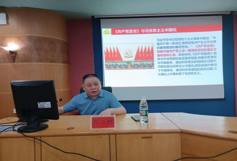 张卫明教授围绕《共产党宣言》与马克思主义中国化、从“五个始终如一”领悟《共产党宣言》以及《共产党宣言》的革命精神永不过时三个方面展开阐述,他用一个个红色经典故事将抽象的哲学思想具体化,帮助学员们多方面、深层次的理解《共产党宣言》蕴含的真理。他指出,《共产党宣言》是马克思主义经典著作中最具里程碑意义的代表作,是全世界无产阶级最富战斗力的革命宣言,是革命导师贡献给人类社会最伟大的思想遗产。