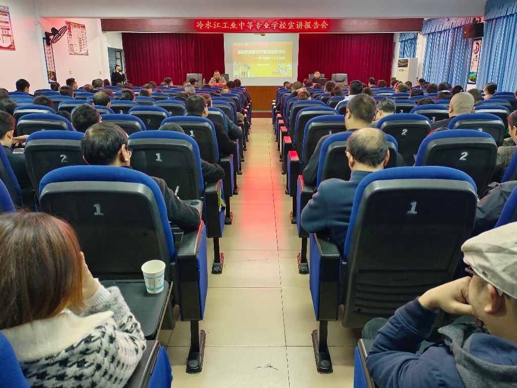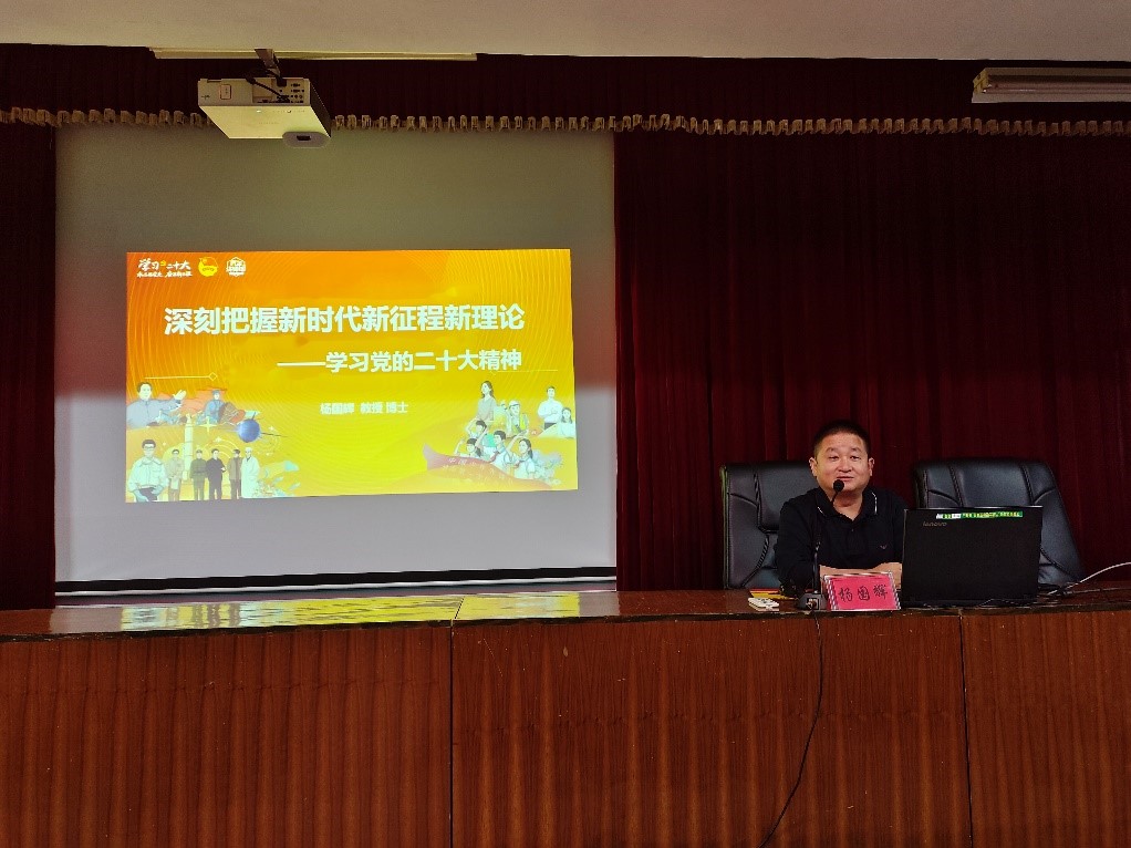 近日,为深入学习贯彻党的二十大精神,按照市委宣讲团统一安排部署,KY官网副院长杨国辉教授至冷水江工业中等专业学校现代技术大楼三楼大会议室做了题为《深刻把握新时代新征程新理论——学习党的二十大精神》的宣讲报告。活动由冷水江工业中等专业学校党委委员、副校长吴彪雄主持,冷水江工业中等专业学校全体教职员工参加。