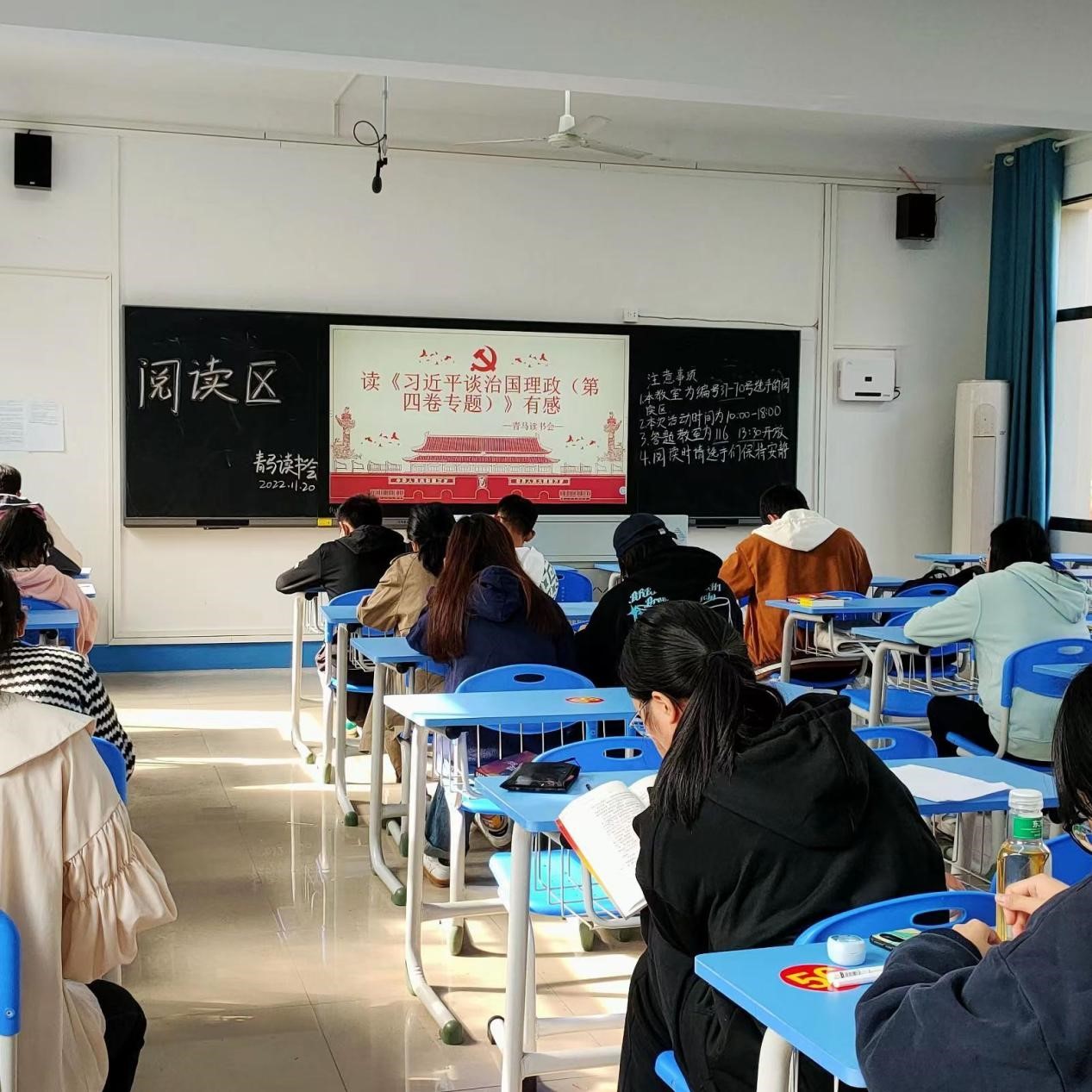 为贯彻落实党的二十大精神,用科学理论武装青年,用初心使命感召青年,11月20日,由KY官网主办,青马读书会承办的“贯彻二十大,迈向新征程”——《习近平谈治国理政》(第四卷)阅读马拉松赛事在若谷楼顺利开展。