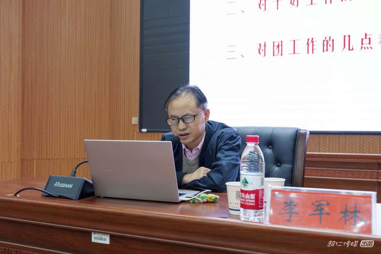 讲座中,李军林结合自己的工作经验与思考指出:一是团干部的成长要注重坚定理想信念、锤炼高尚品质、练就过硬本领;二是干好团工作要坚持把握节奏、厘清内容、分出缓急的工作原则,坚持不出差错、区别对待、持续提升的标准,要掌握主动学、提前想、自觉干、重效果的工作方法;三是把握当前团工作形势要突出思想政治引领这一灵魂、突出服务青年这一生命线、突出青年社会组织这一伙伴、突出新兴领域这一关键。
