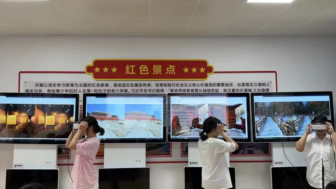 第二阶段,同学进入虚拟仿真实训室开展主题教育活动、思政VR实践活动,利用虚拟仿真设备,将同学们“传送”到了遵义会议旧址、北京天安门广场、故宫博物院等红色旅游胜地。“思政+VR”的智慧教学模式,解决了传统思政课形式单一、体验感较弱等实际问题,促进思政课内容成为“看得见、摸得着”的事物。同学们纷纷表示此次实训受益匪浅,身临其境地感受到了历史的气息,深深地受到了红色精神的鼓舞。
