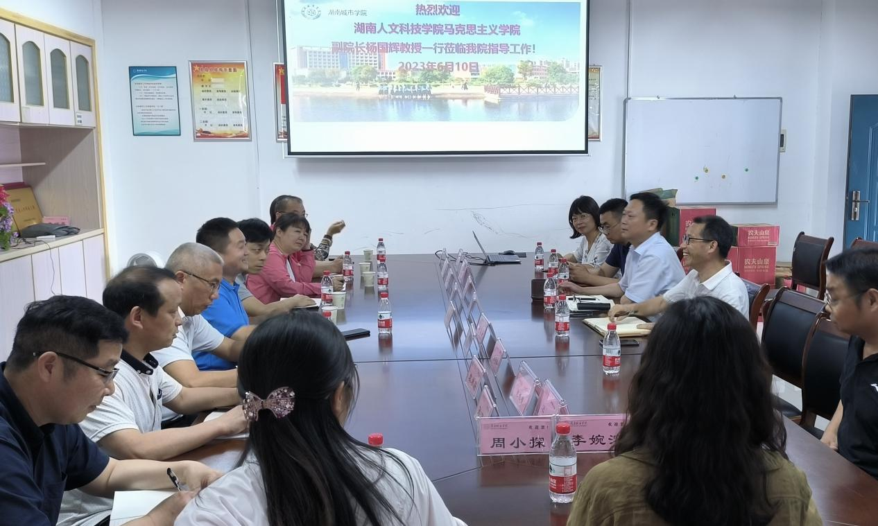 为进一步完善KY官网的教学模式,提升教学质量,6月10日,副院长杨国辉教授带领KY官网谢科峰、卿孟军、成赛军、刘辉玲、袁承蔚、孙淇庭等教研室主任、骨干教师赴湖南城市学院马克思主义学院进行考察交流。交流会由湖南城市学院马克思主义学院院长夏建文教授主持,学院党总支书记何军新教授、院长助理、教研室主任代表等参加会议。