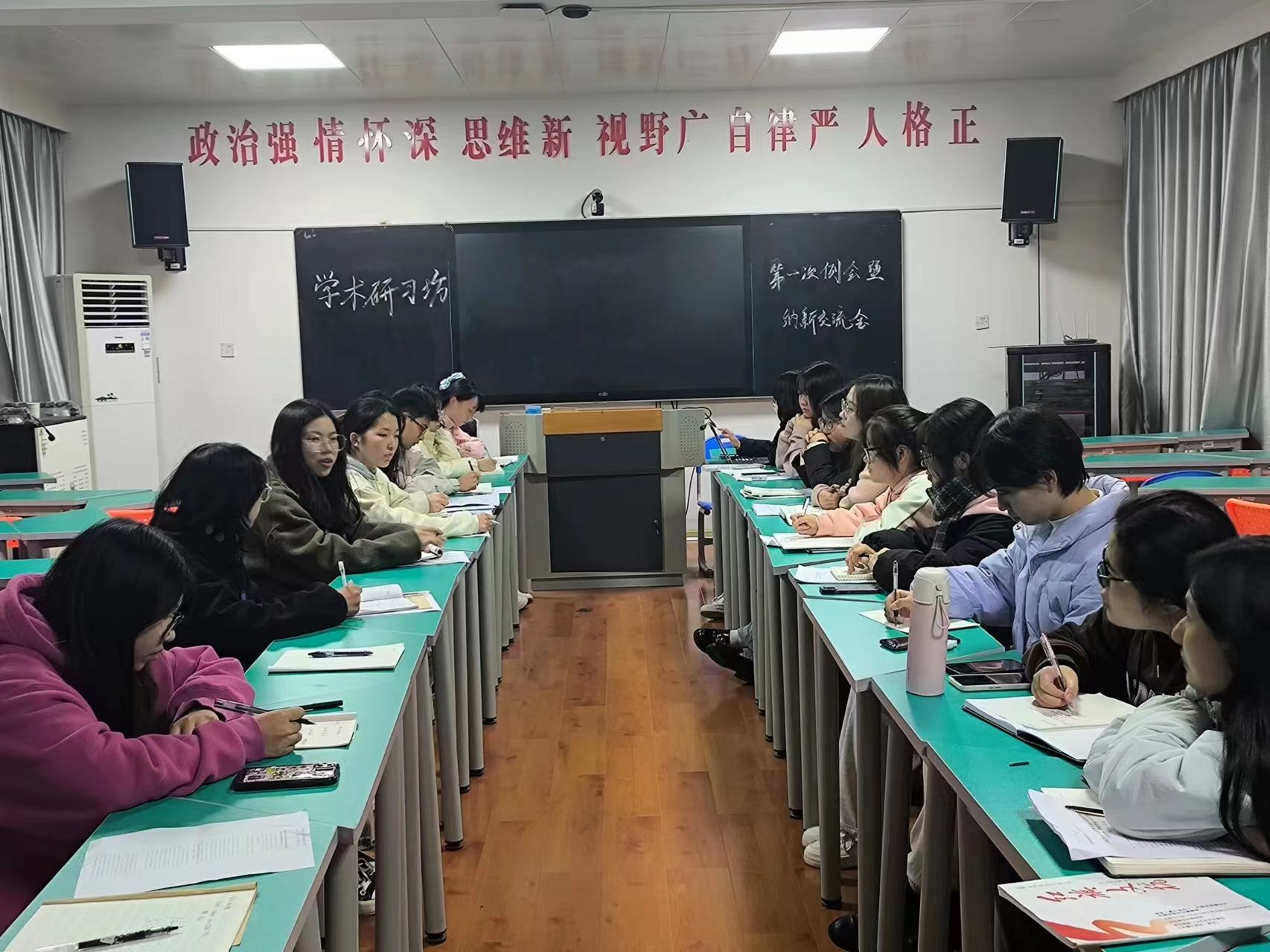 近日,学术研习坊纳新交流会暨研读交流会于若谷楼301举行。学术研习坊指导老师李婉溶老师出席,学术研习坊全体成员参与研讨,理论部部长袁海华主持。