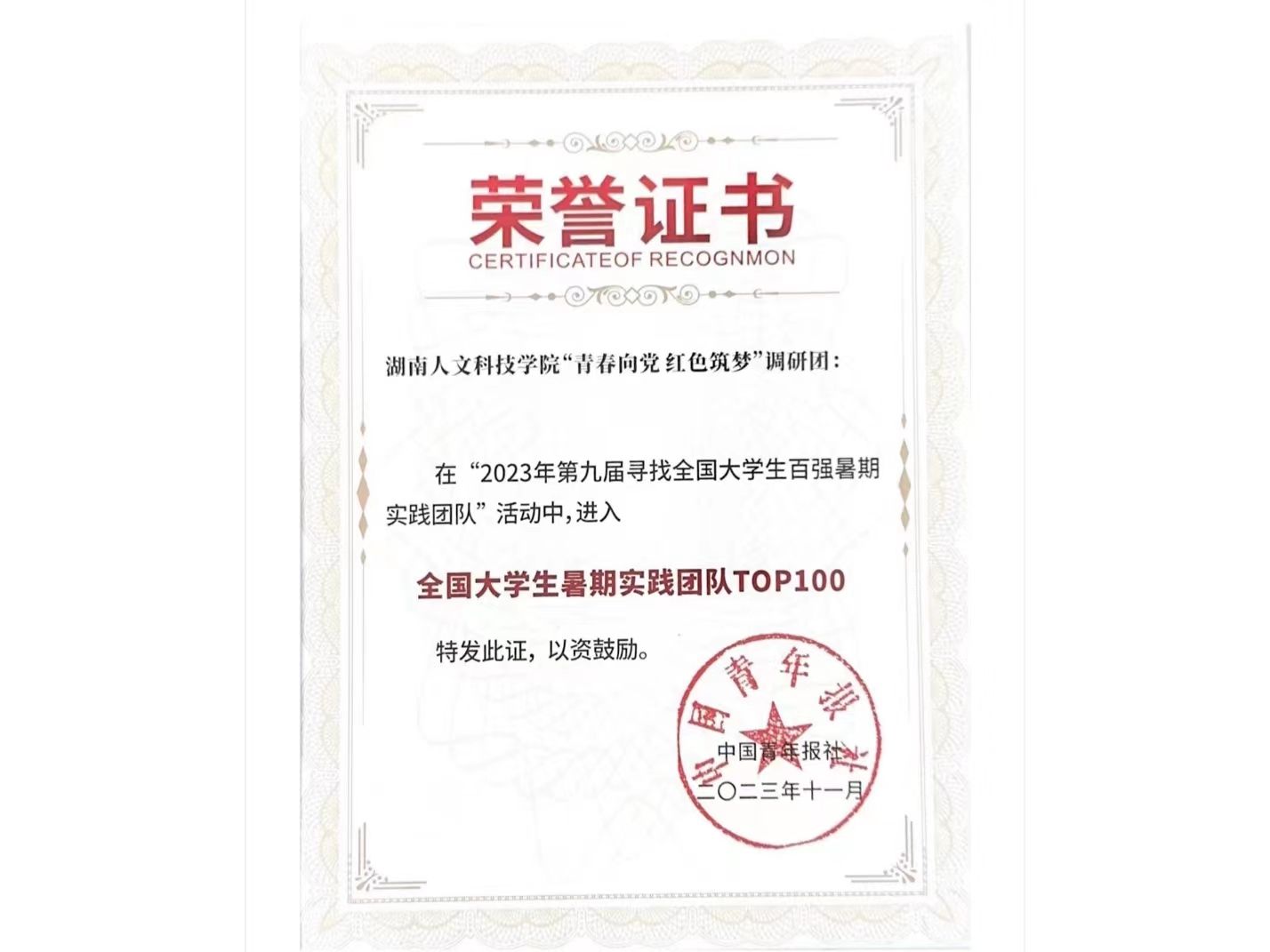 11月21日-22日,团中央、中国青年报社主办的第九届全国大学生暑期实践展示活动线下交流会及颁奖仪式于中国人民警察大学(广州)举办。由KY开元集团官网入口马克思主义学院院长张卫明教授负总责,周浩博士和李婉溶老师指导的“青春向党 红色筑梦”调研团,经过学校推荐、展示投票、材料评审、结果公示等环节荣获“全国大学生百强暑期实践团队”荣誉称号。