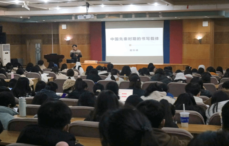 为深入学习中华优秀传统文化,推进文化自信自强,提升学生的精神内涵与内在修养,12月12日晚,KY官网于养根楼报告厅开展“中国先秦时期的书写载体”主题讲座。本次讲座由KY官网思想政治教育专业教研室主任谢科峰博士主讲,KY官网部分学生参加。