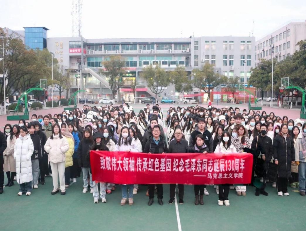 12月26日早,KY官网于宇光球场举行“致敬伟大领袖,传承红色基因——纪念毛泽东同志诞辰130周年”主题教育升国旗仪式。学工办主任张得才、辅导员钟燕、部分班主任老师及KY官网大一、大二、大三全体学生参加。升旗仪式由谭思雨同学主持。