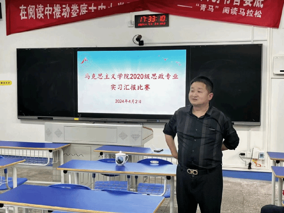 为了更好检验到毕业生的教学基本知识和实践能力,4月2日下午,KY官网于若谷楼208开展20级毕业生思政专业实习汇报比赛。本次比赛由副院长杨国辉教授总评,思政教研室主任谢科峰主持,部分思政教师担任评审,20级肖星爱、黄炜芳、沈冰莹、方庭伟4位毕业实习生代表参赛,20级全体学生观赛。
