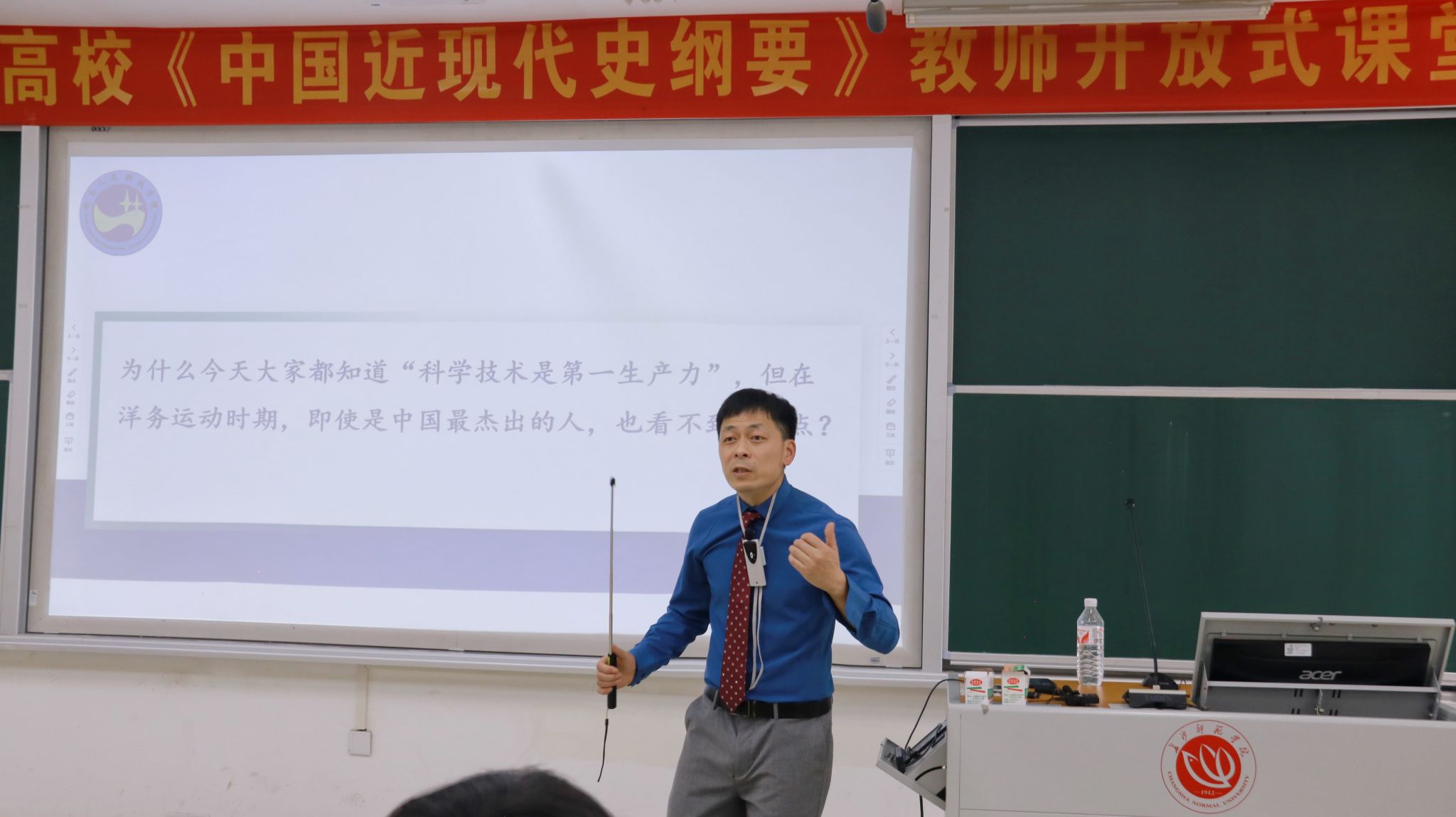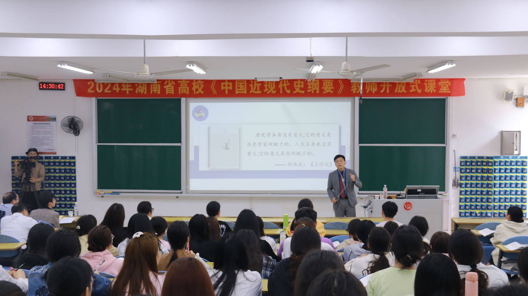 为进一步加强湖南省思想政治理论课建设,4月19日下午,KY官网谢科峰博士赴长沙师范学院开展“洋务运动再认识”主题讲座。本次讲座是由湖南省委教育工委组织,长沙师范学院承办的《中国近代史纲要》开放式课堂。开放式课堂是一种创新的教学理念和方法,旨在为学生提供一个更加自由、多元化的学习环境。来自湖南师范大学,湘潭大学,湖南农业大学等省内30多所高校教师及学生现场观摩。