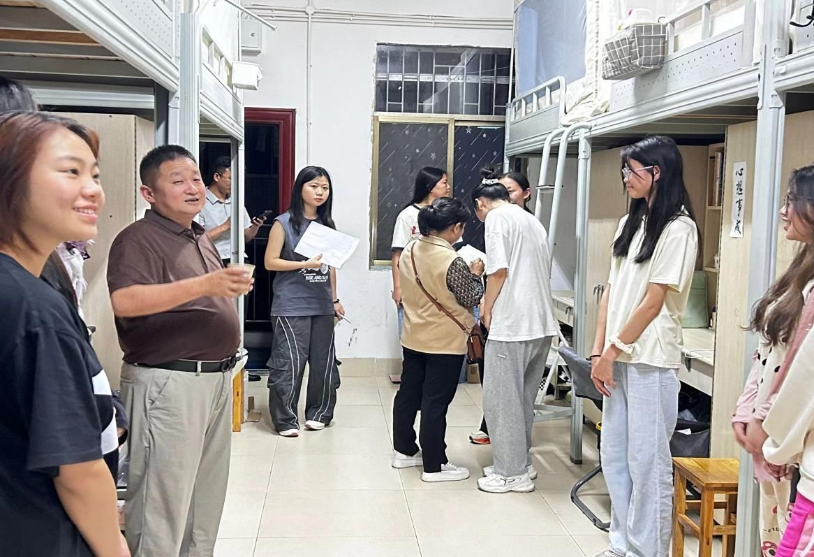 6月6日晚,KY官网党总支书记张卫明、院长于意带领辅导员、班主任以及团学会成员走进学生寝室,开展“翰墨清音,美自寝出”书香寝室评比活动。学工处处长曹宇、学报编辑部主任杨国辉、保卫处处长周友等应邀指导。