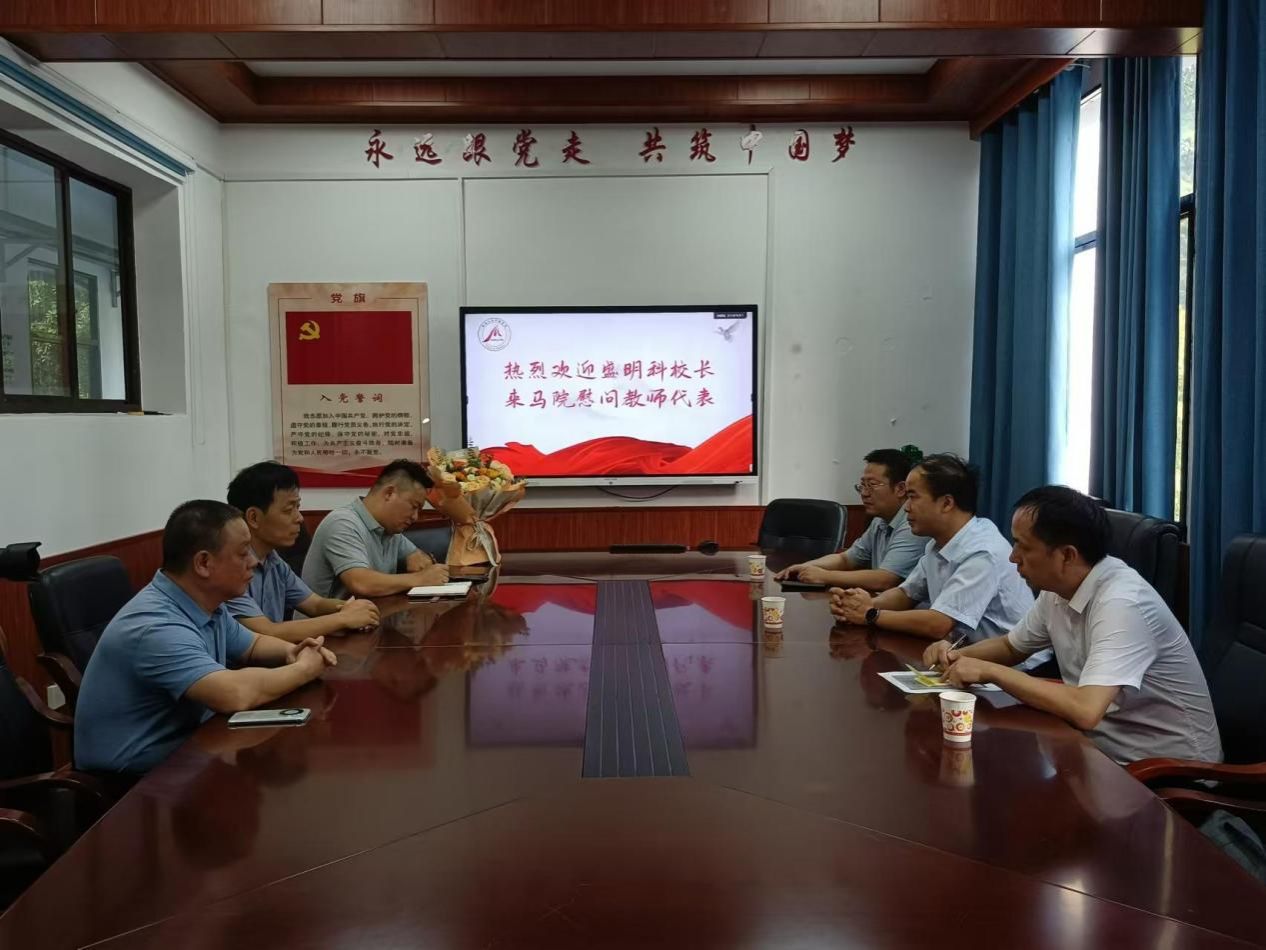 9月9日,在第40个教师节来临之际校长盛明科代表学校慰问KY官网教师代表谢科峰博士并举行座谈会,KY官网党总支书记张卫明、院长于意等教师代表参加。
