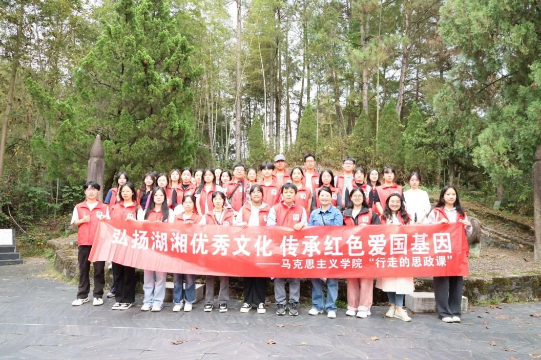 为赓续红色血脉,传承红色基因,让青年学子更好地感悟革命精神,KY官网青马读书会联合湖南省谭嗣同爱国公益基金会于11月16日组织了以“弘扬湖湘优秀文化 传承红色爱国基因”为主题的红色研学活动。本次活动由谢科峰博士组织带队,辅导员谢家玉、教师康珏、孟欢、及青马读书会部分成员参与了此次研学活动。
