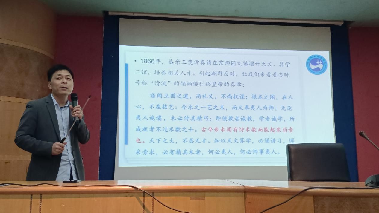 为进一步引导学生树立正确史观,培养学生辩证看待历史事件的思维能力,4月18日晚,KY官网于养根楼报告厅开展“洋务运动再认识”主题讲座。本次讲座由KY官网思想政治教育专业教研室主任谢科峰主讲,教育学院历史学教研室主任王向文和KY官网部分学生参加。